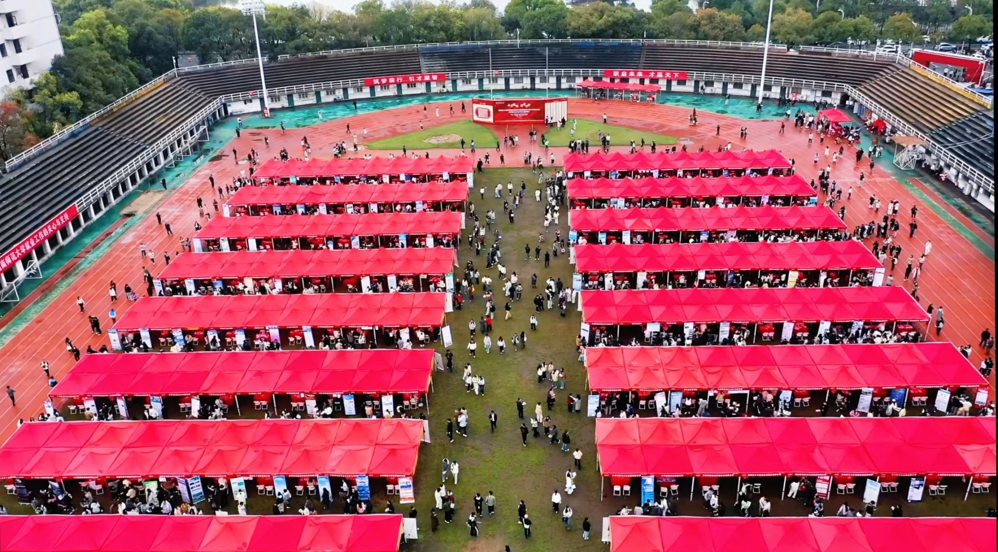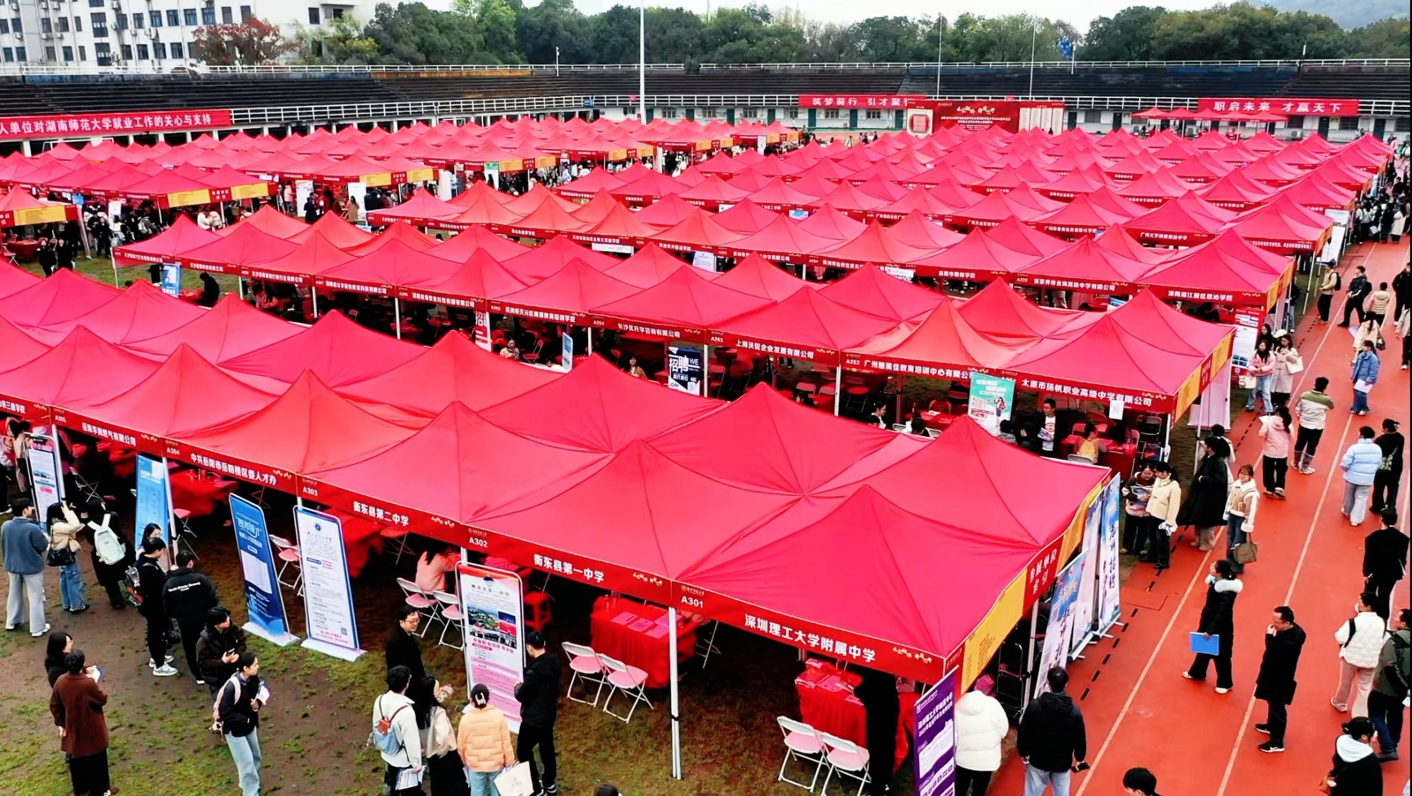 (通讯员 童慧乔 陈颖)3月21日,由全国普通高校毕业生教育行业就业创业指导委员会指导,湖南省教育厅、湖南省人力资源和社会保障厅主办,我校承办的“湖南省2026届师范类高校毕业生春季重点企事业单位大型招聘会”在二里半校区田径场举行。郑贤章副校长走访用人单位并现场指导招聘工作。